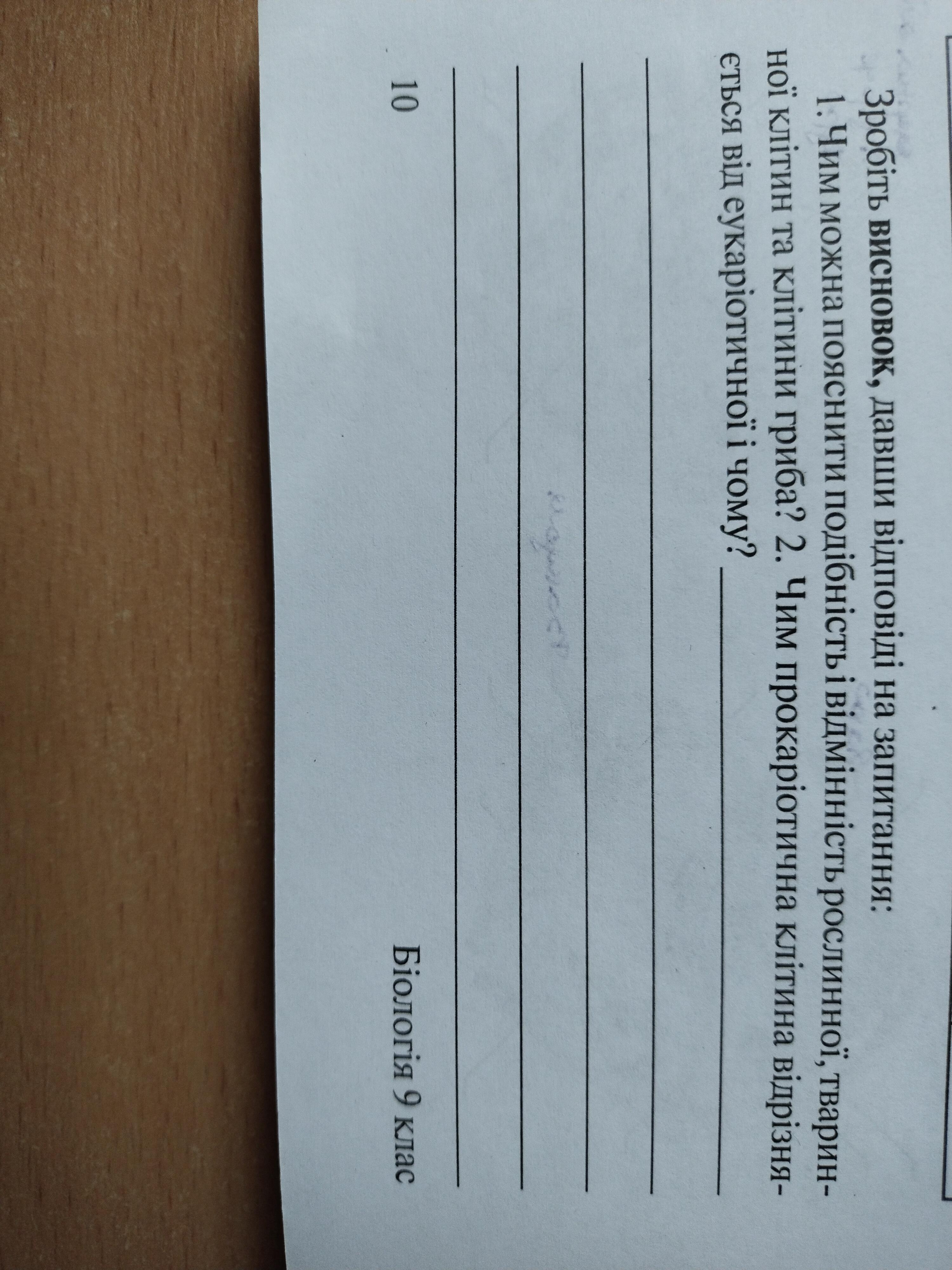 1. Чим можна пояснити подібність і відмінність рослинної, тваринної клітин та клітини гриба? 2. Чим прокаріотична клітина відрізняється від еукаріотичної і чому?