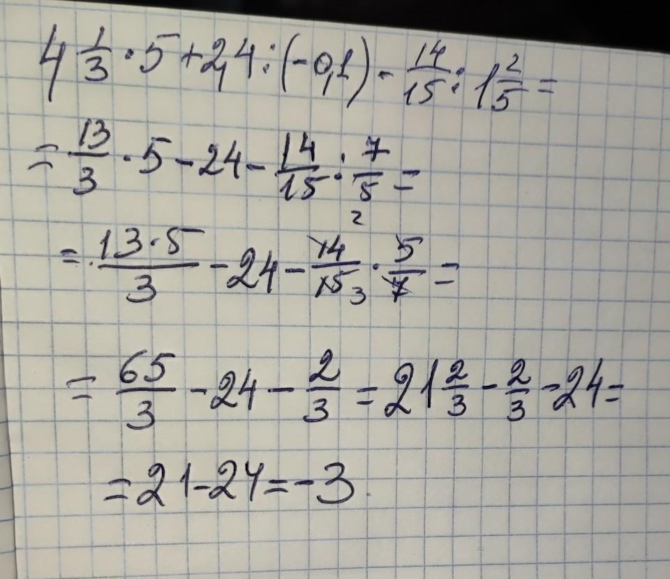 5) -2 1/3 - 2/3 = -2 3/3 = -3