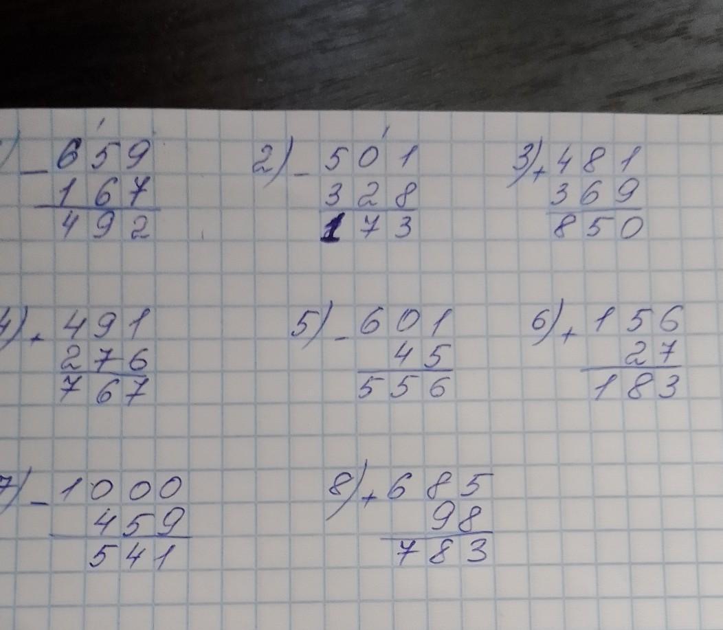 5. Вычисли. Выполни проверку. 659-167 501 - 328 481 +369 491 +276 601-45 27+156 1000-459 98 +685
