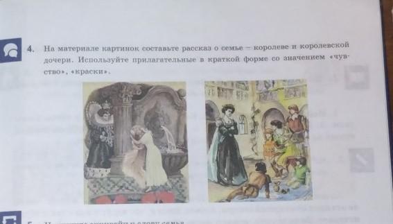 4. На материале картинок составьте рассказ о семье дочери. Используйте прилагательные в краткой форме со значением королеве и королевской ство», «краски».