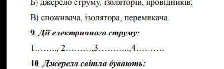 9.Дії електричного струму: 1.Теплова 2.Світлова 3.Магнітна 4.Хімічна