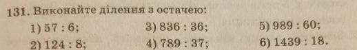 1) \(57:6\) - при діленні 57 на 6 отримуємо 9 з залишком 3. Отже, вірна відповідь: 3.