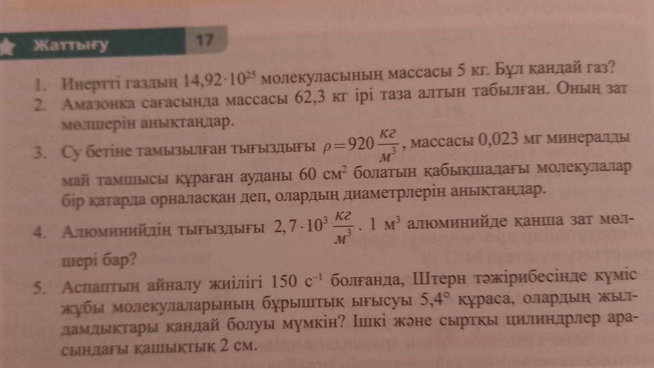 1. Инертті газдын 14,92-10² молекуласынын массасы 5 кг. Бұл кандай газ?