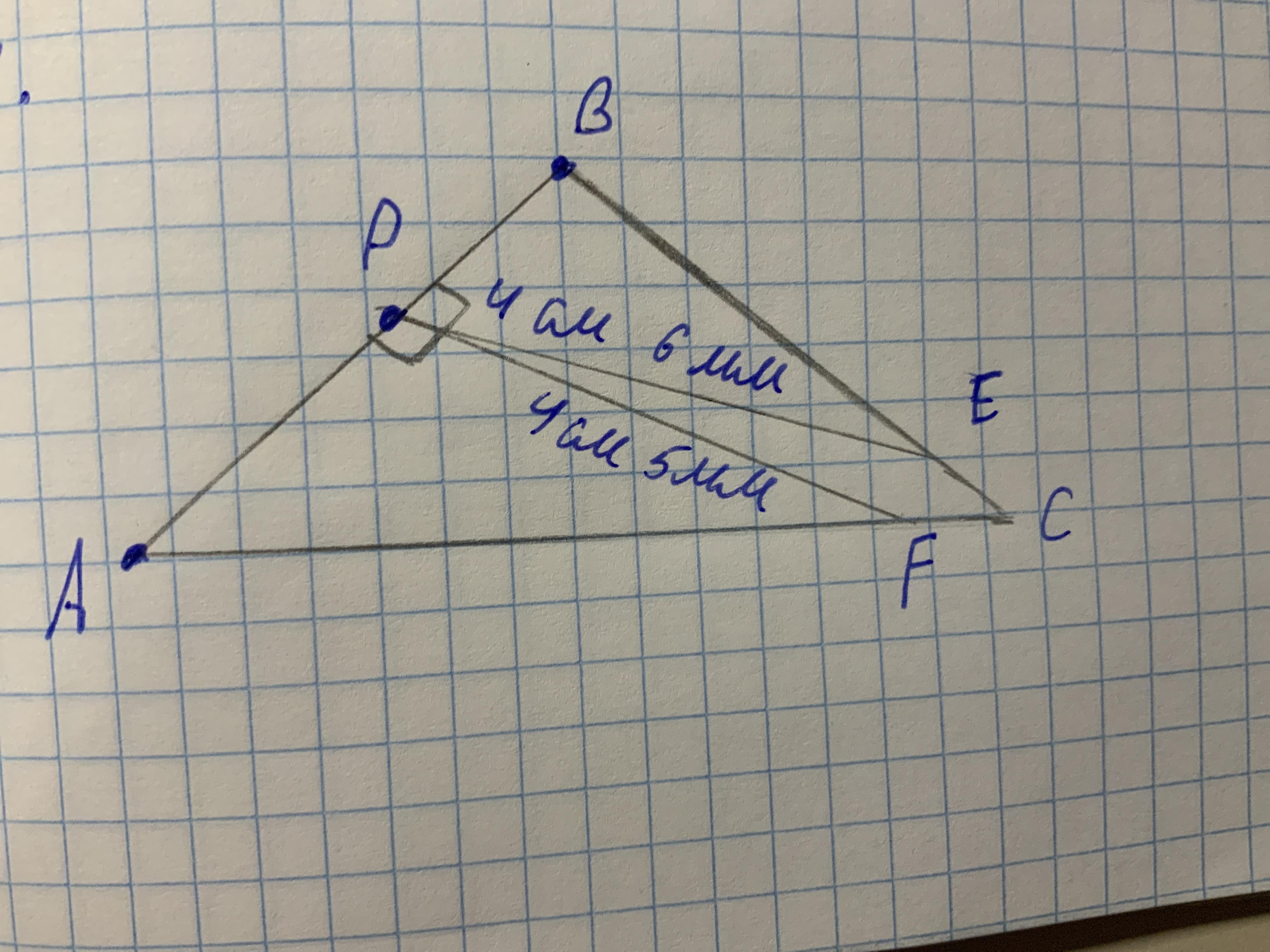 СРОЧНО!¡!!!!!!!!!!!!!!!!4. Виконай завдання. Побудуй трикутник ABC. Постав точку Р на стороні АВ. За допо- могою косинця побудуй перпендикуляри з точки Р до прямих ВС і AC. Виміряй їхню довжину.