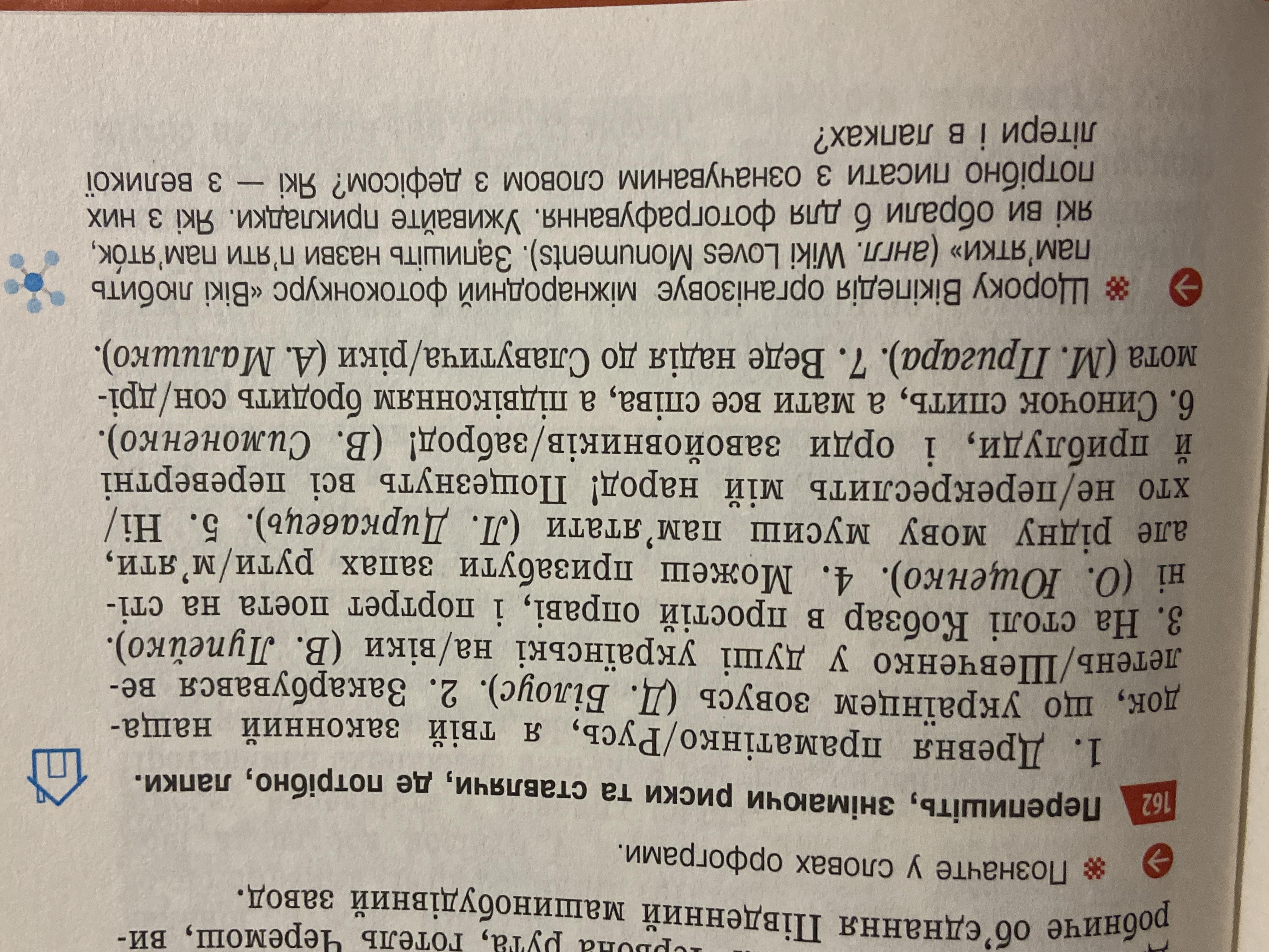 1)Древня праматінко-Русь, я твій законний нащадок, що українцем зовусь.2) Закарбувався велетень Шевченко у душі українській навіки.3) На столі «Кобзар» в простій оправі і портрет поета на стіні. 4) Можеш призабути запах рути-м’яти, але рідну мову мусиш пам’ятати. 5)Ніхто не перекреслить мій народ! Пощезнуть всі перевертні й приблуди і орди завойовників-заброд! 6)Синочок спить, а мати все співа, а підвіконням бродить сон-дрімота. 7) Веде надія до Славутича-ріки.