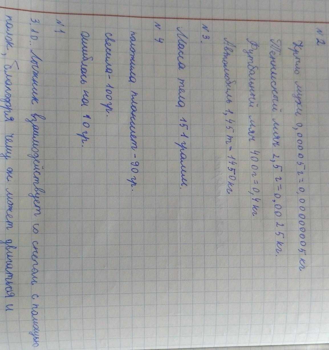 Упражнения 3.1 1. Рассмотрите рис. 3.10 и 3.11 и опишите проявления взаимодействия. 2. Выразите в килограммах приведенные ниже значения 0,00005 г, теннисный мяч 400 г, автомобиль - 1,45 т. массы: крыло мухи 2,5 г, футбольный мяч 3. Тело уравновешено набором гирь массой 100 г; 50 г; 1 г. Какова масса тела? 4. Положив на ладонь какое-либо тело, оцените его мас- су, затем, взвесив его на весах, проверьте, насколько вы ошиблись. 5. Два мальчика на роликовых коньках, оттолкнувшись друг от друга, поехали в разные стороны со скоростью 3 м/с и 4 м/с соответственно. Масса одного мальчика 40 кг. Чему равна масса другого? Рис. 3.10 знание м Отсюд емого плог Масса плотность Таким разделит ческая бу определя 2. на куби которо единип