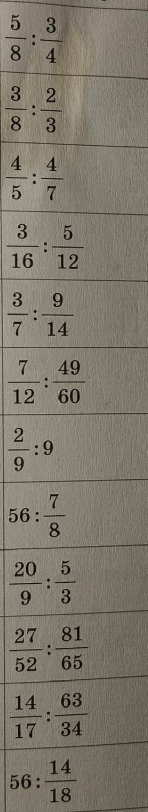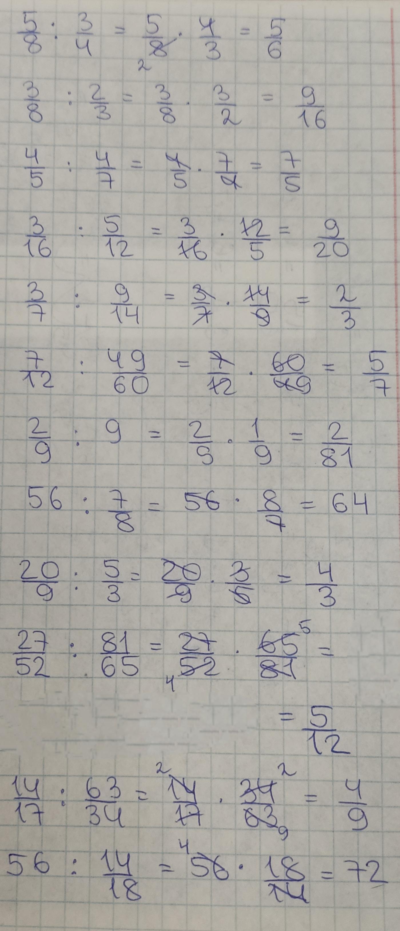 6) . . . = 7/12 * 60/49 =5/7 ; 12) . . . = 56/1 * 18/14 = 72 .