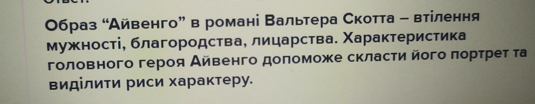 Ответ:Івенго (іноді транскрибується як "Айвенго") - це літературний персонаж, головний герой роману Вальтера Скотта "Івенго, або Лісовий хресний брат" (1820). Івенго є добре відомим прикладом романтичного літературного героя, і характеризується наступним чином: