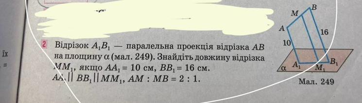 В₁В₂ = АА₁ = 10 см , а ВВ₂ = 16 - 10 = 6 ( см ) . ММ₂║ВВ₂ , тому