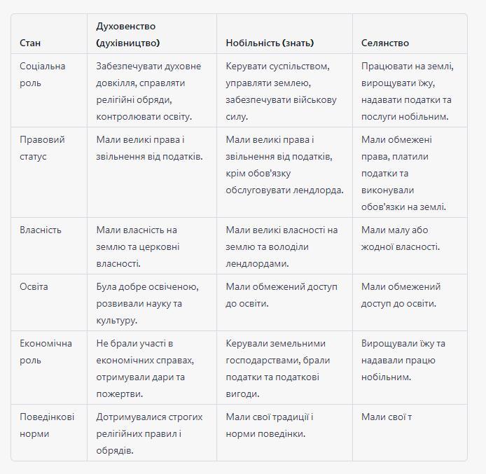 Складіть характеристику станів середньовічного суспільства у формі таблиці "Три стани середньовічного суспільства"