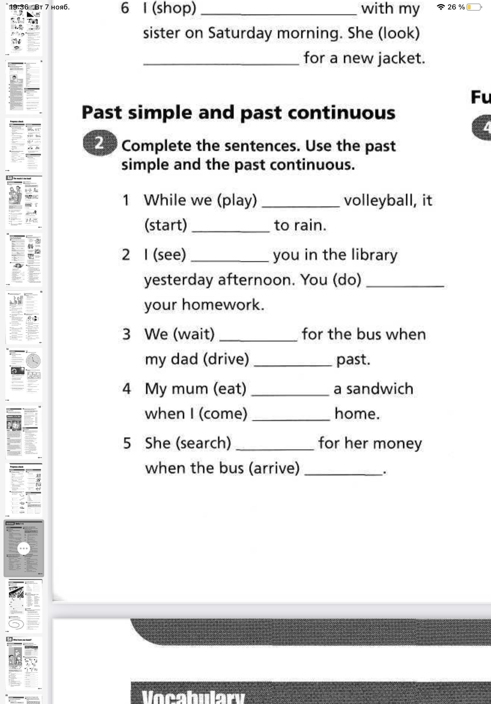 2. I saw you in the library yesterday afternoon. You did your homework.