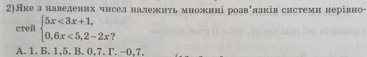 Із цього виходить, що x <0,5. Єдине число із наведених, яке менше за 0,5 це -0,7