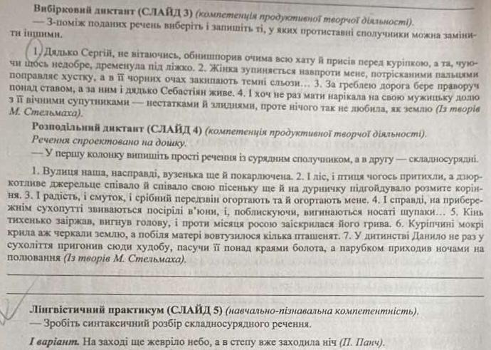 Вибірковий диктант (СЛАЙД 3) (компетенція продуктивної творчої діяльності).