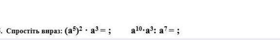 1. (а⁵)²*а³=а¹⁰*а³=а¹³ 2. а¹⁰*а³÷а⁷=а⁶