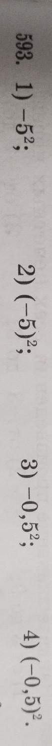 (-0,5)² = -0,5 * (-0,5) = 0,25