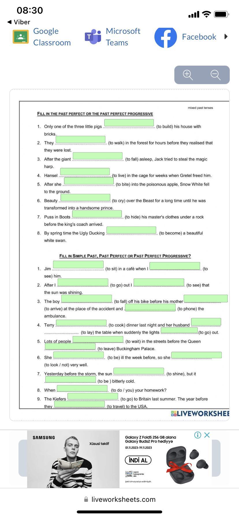 Fill in Simple Past, Past Perfect, or Past Perfect Progressive:
