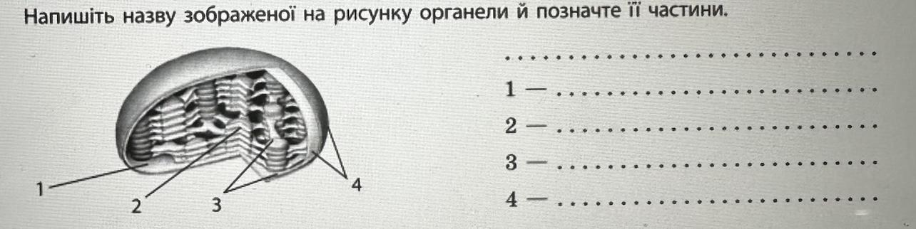 Напишіть назву зображеної на рисунку органели й позначте ïï частини.