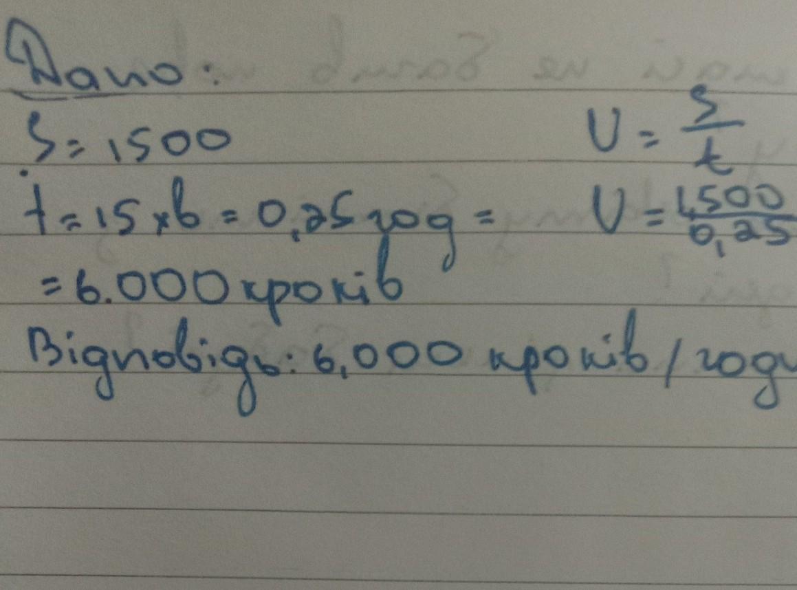 Допоможіть будь ласка. Потрібно визначити середня швидкість якою ви рухаєтесь від дому до школи, оформити як задачу. Я порахувала, я йду 15 хв 1500 кроків. Даю 40 балів! Срочно!!!!