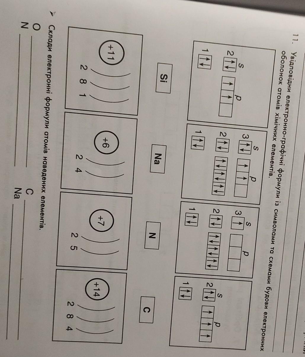 у відповідні електронно-графічні формули із символами та схемами будова електронних оболонок атомів хімічних елементів
