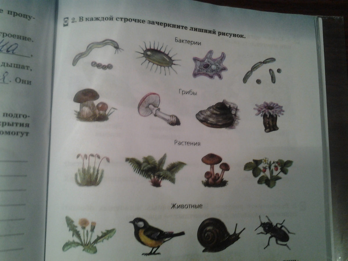 живот- растение растение-гриб грибы- какой=то камешек похож бактерие незнаю