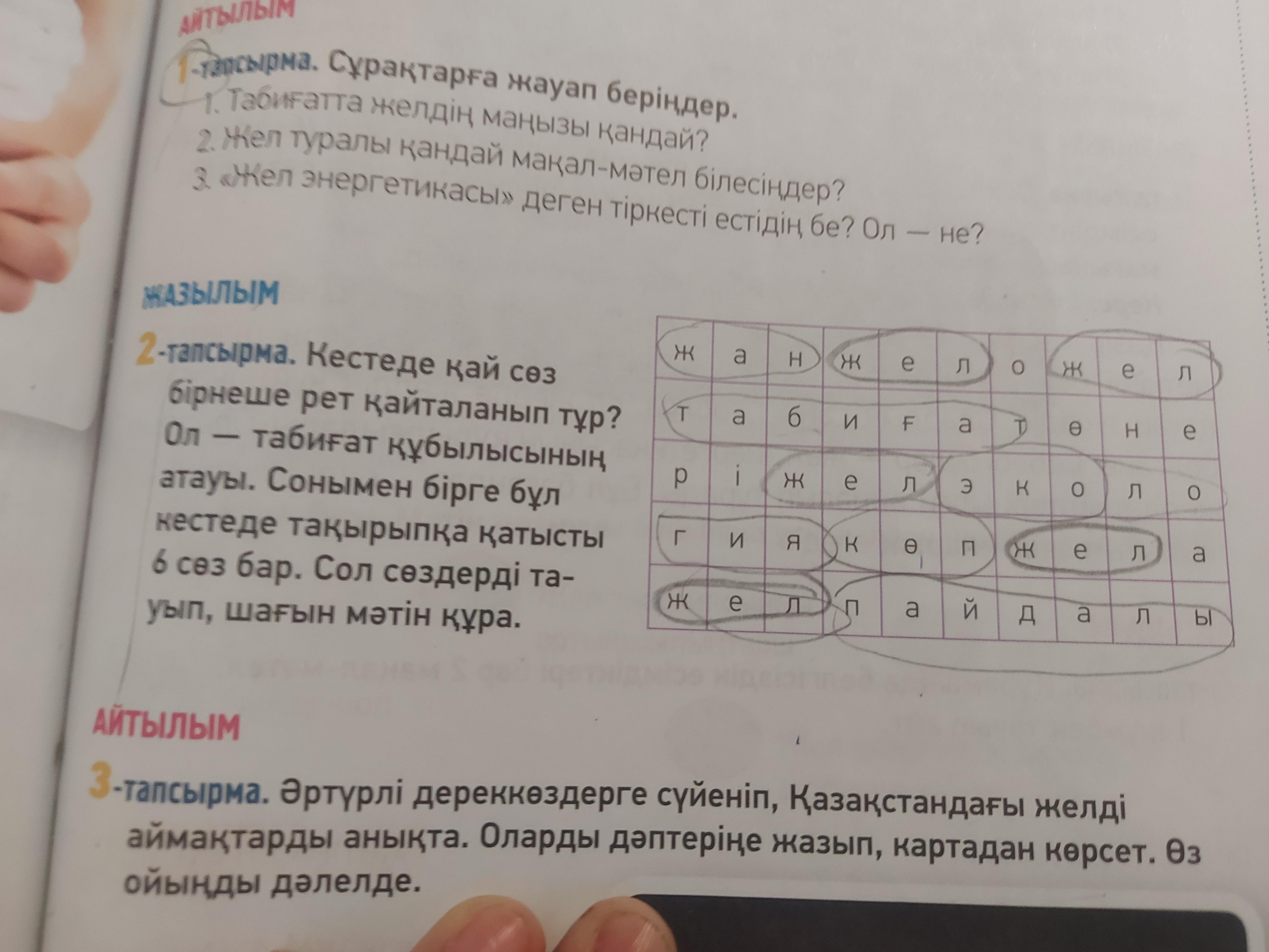 ЖАЗЫЛЫМ 2-тапсырма. Кестеде кай сез бірнеше рет қайталанып тұр? Ол - табиғат құбылысының Сонымен бірге бұл атауы. кестеде тақырыпқа қатысты 6 сөз бар. Сол сөздерді та- уып, шағын мәтін құра.