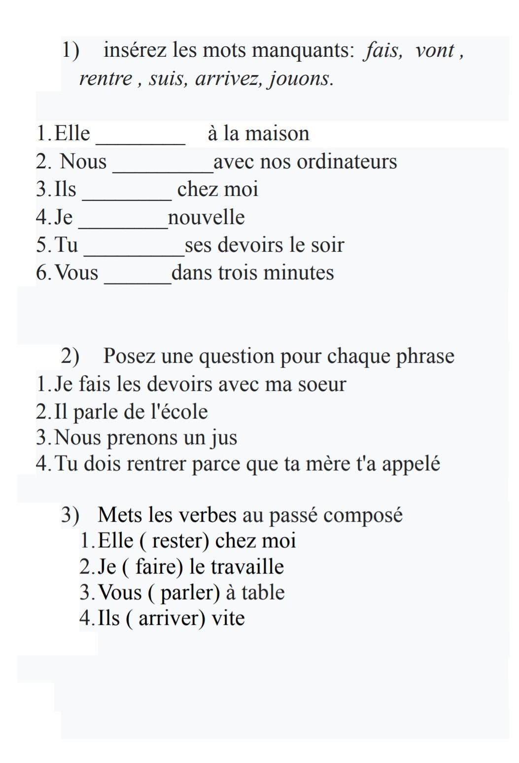 1.)Qui fais-tu les devoirs avec ?