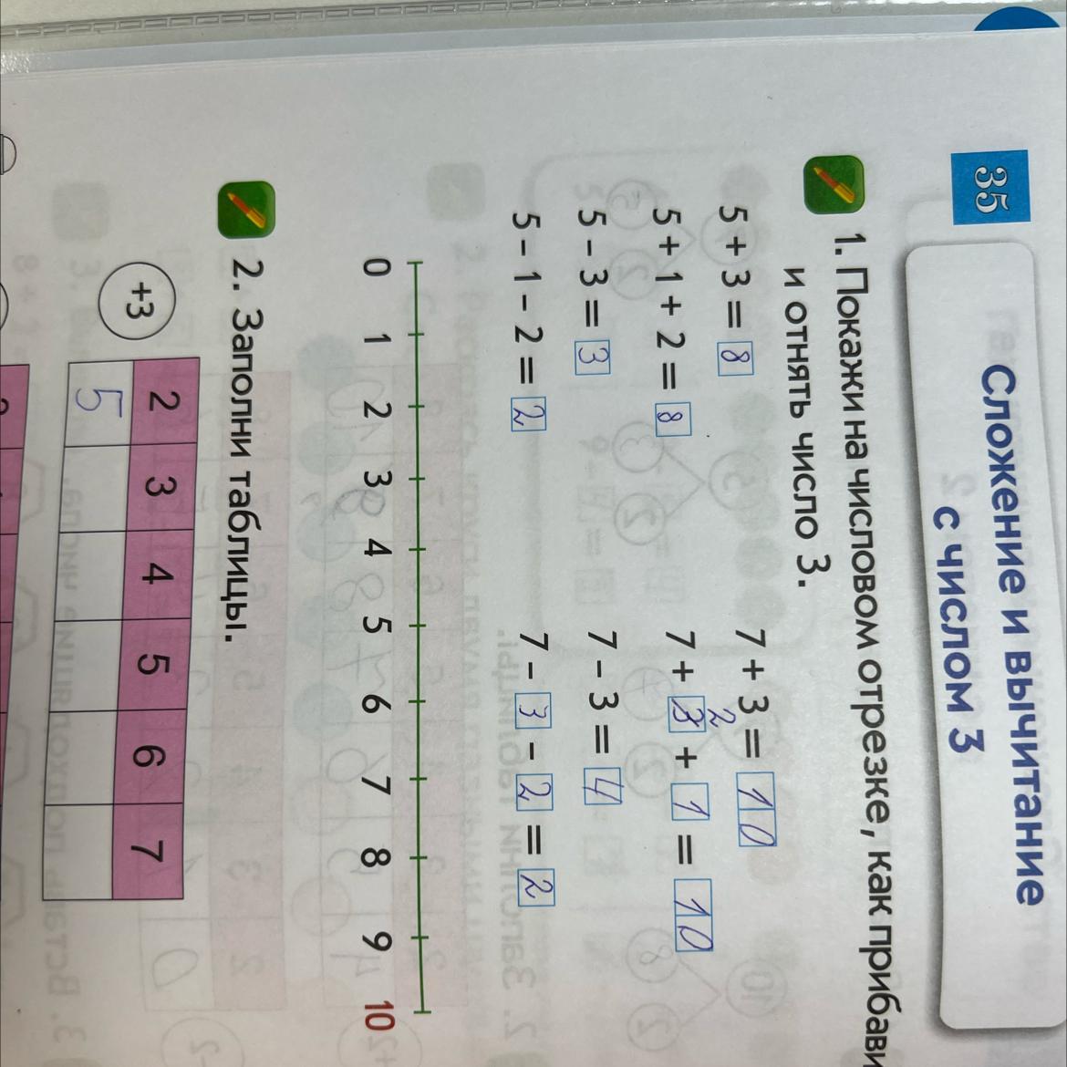 с числом 3: покажи на числовом отрезке, как прибавить и отнять число 3.