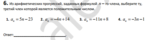 Из арифметической прогрессии, заданной формулой n-го члена, выберите ту третий член которого является положительным числом