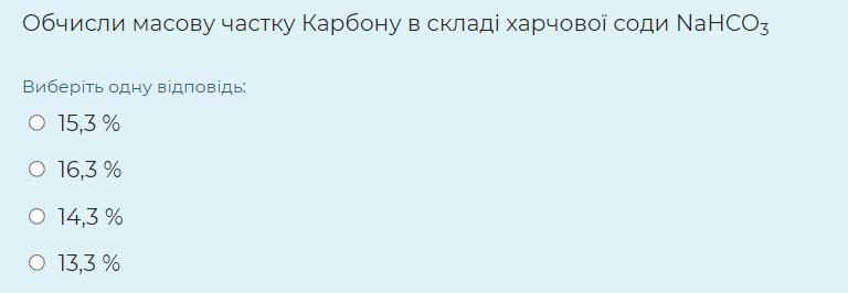 Срочно надо обчислити масову частку Карбону в складі харчової соди NaHCO3