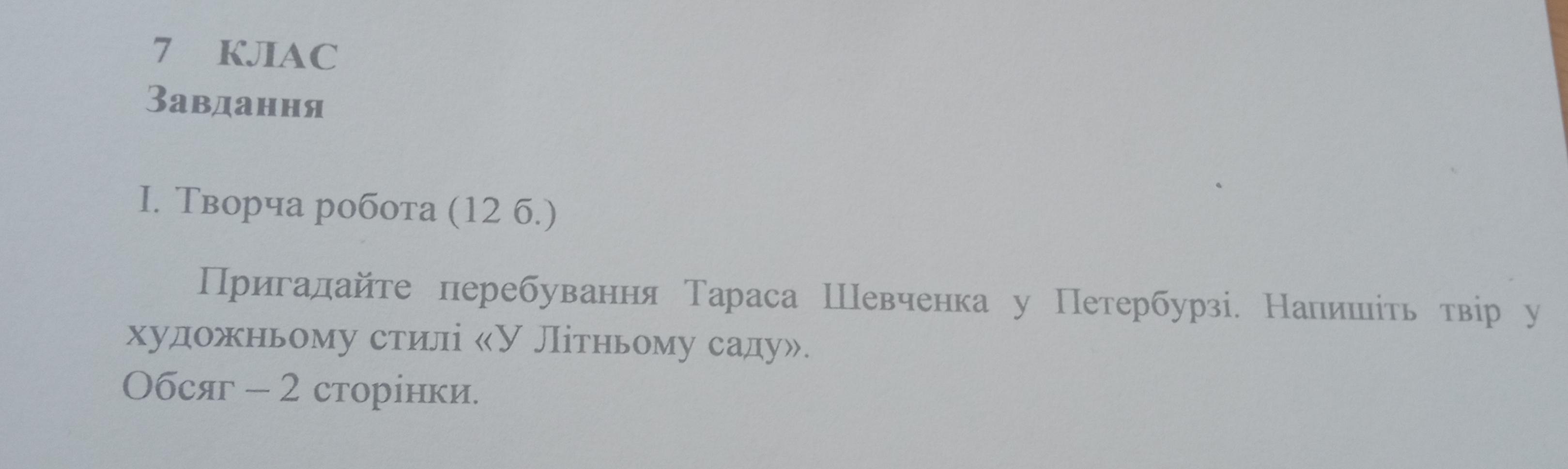 Пригадайте перебування Тараса Шевченка у Петербурзі. Напишіть твір у художньому стилі "У літньому саду" обсяг - 2 сторінки