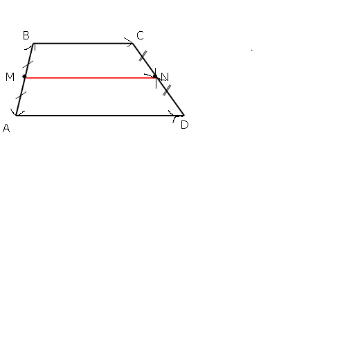 Но M и N - середины сторон AB и CD. Поэтому MB+MA=0, CN+DN=0. Следовательно 2MN=AD+BC, откуда выводим, что MN=0,5(BC+AD).