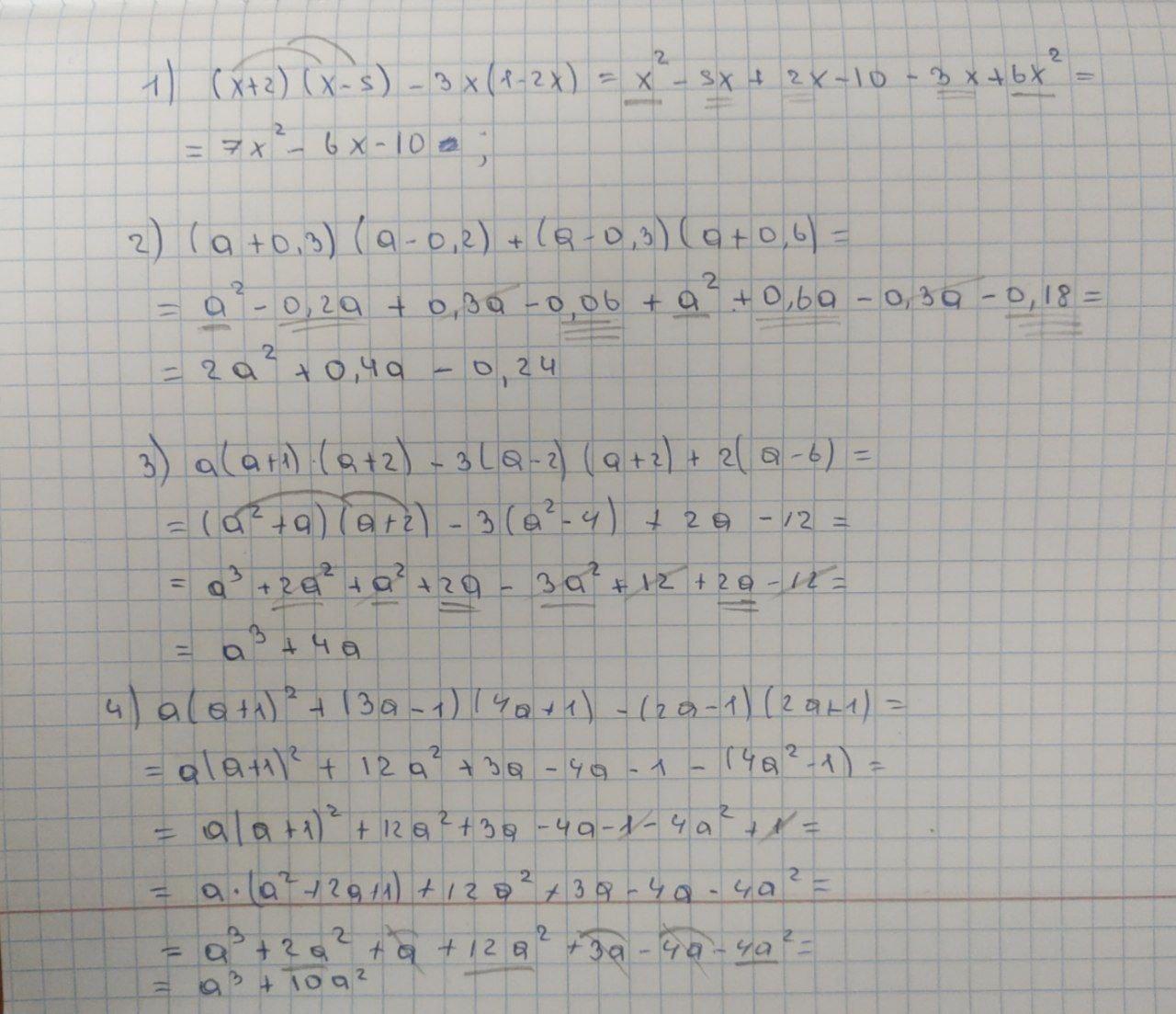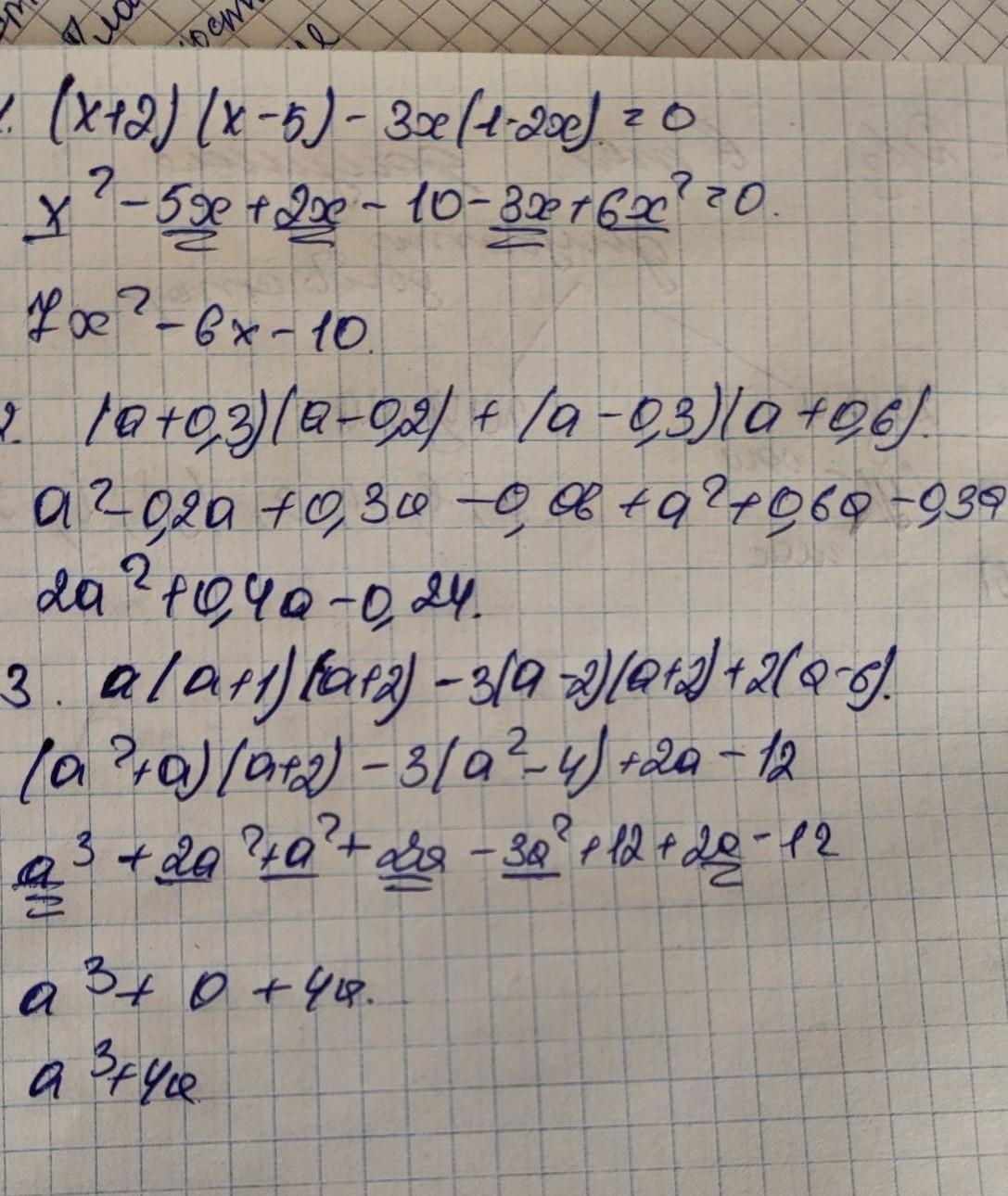 (х+2)(х-5)-3х(1-2х) = х²-5х+2х+10-3х+6х² = 7х²-6х-10