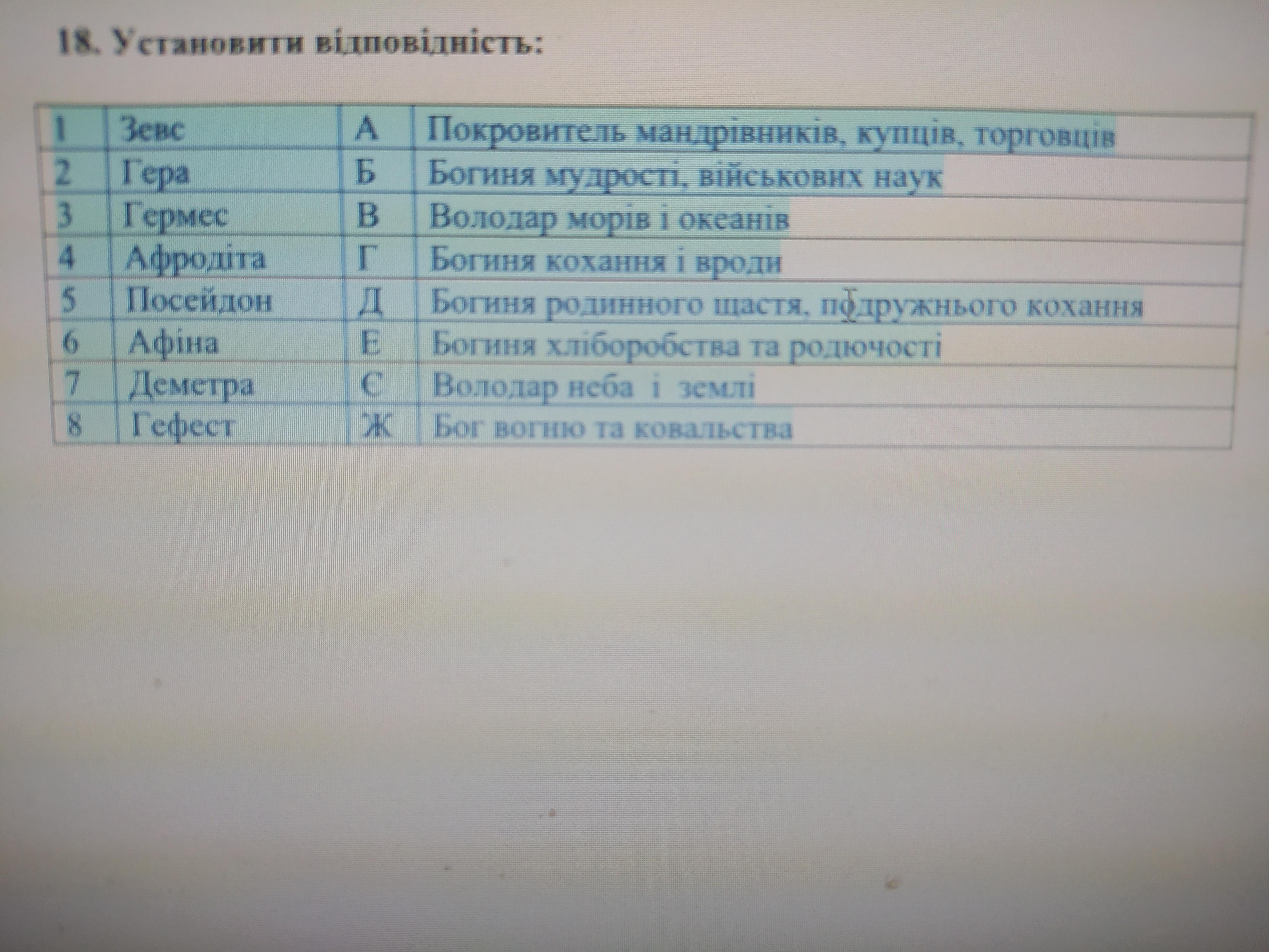 1) Є, 2) Д ,3) А, 4) Г, 5) В, 6) Б, 7) Е, 8) Ж.