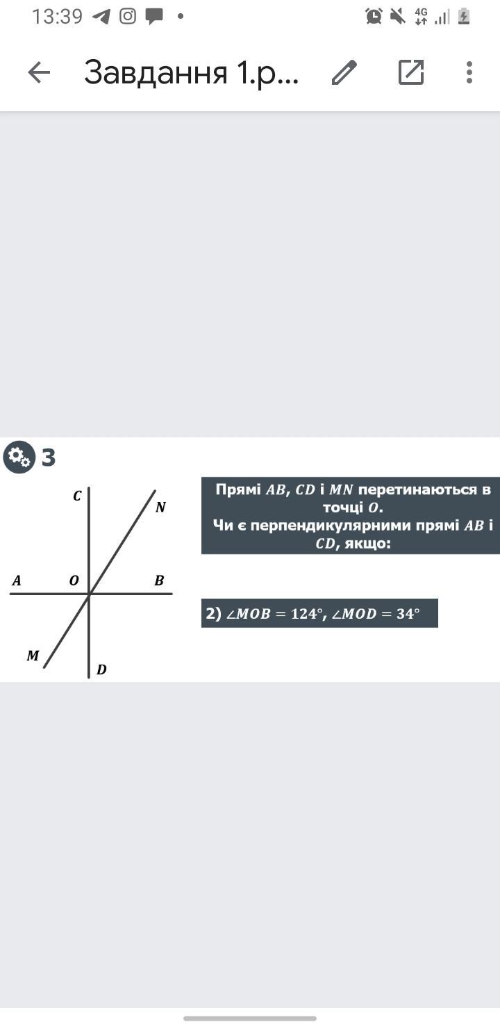 Прямі АB,CD I MN перетинаются в точці О. Чи є перпендикулярними прямі АB I CD, якщо