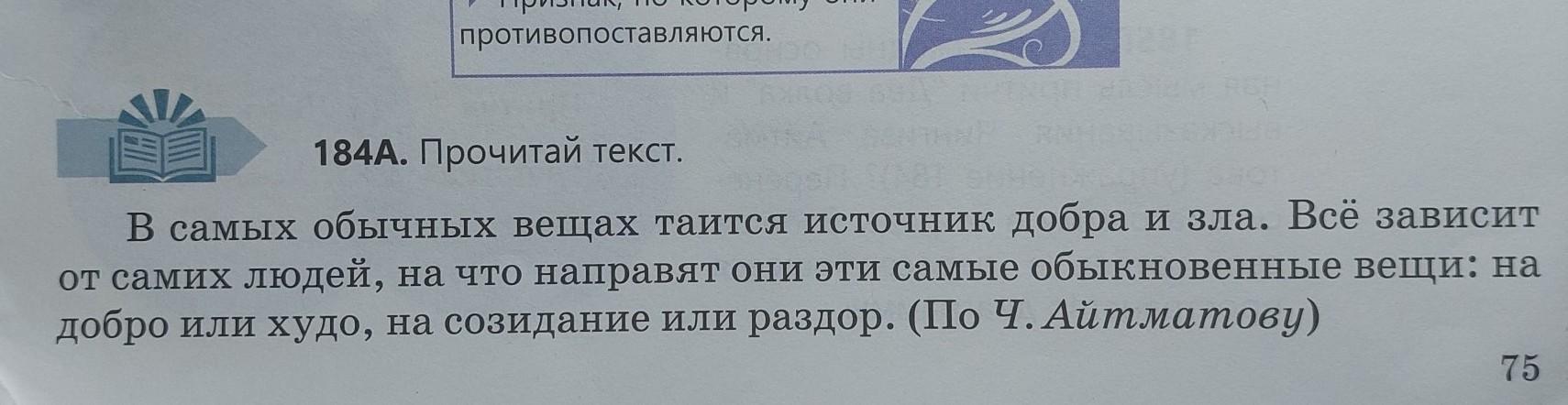 184В. Найди в тексте антонимы. Запиши в данную таблицу пары антонимов по темам "Добро" и "Зло" из текста, подбери свои.