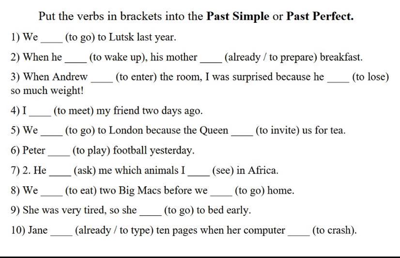 10) Jane had already typed ten pages when her computer crashed.