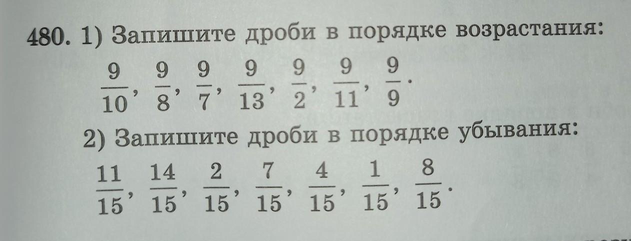480. 1)Запишите дроби в порядке возрастания