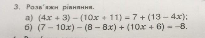 а) (4х + 3) - (10х + 11) = 7 + (13 - 4х)