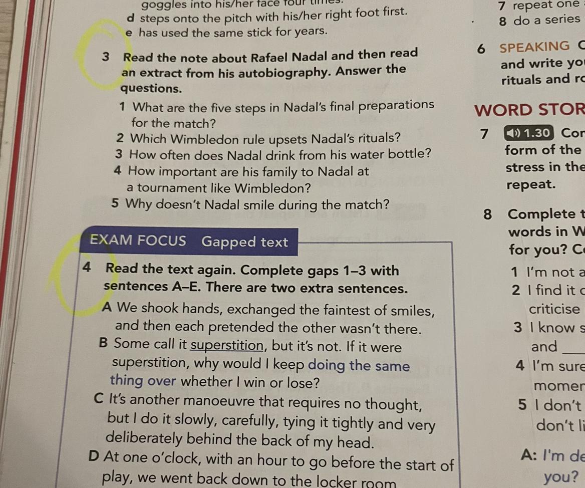 I sat down, took off my white tracksuit top, and took 25 a sip from a bottle of water. Then from a second botile.