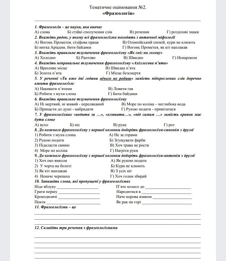 11. Фразеологія – це наука, яка вивчає стійкі словосполучення.