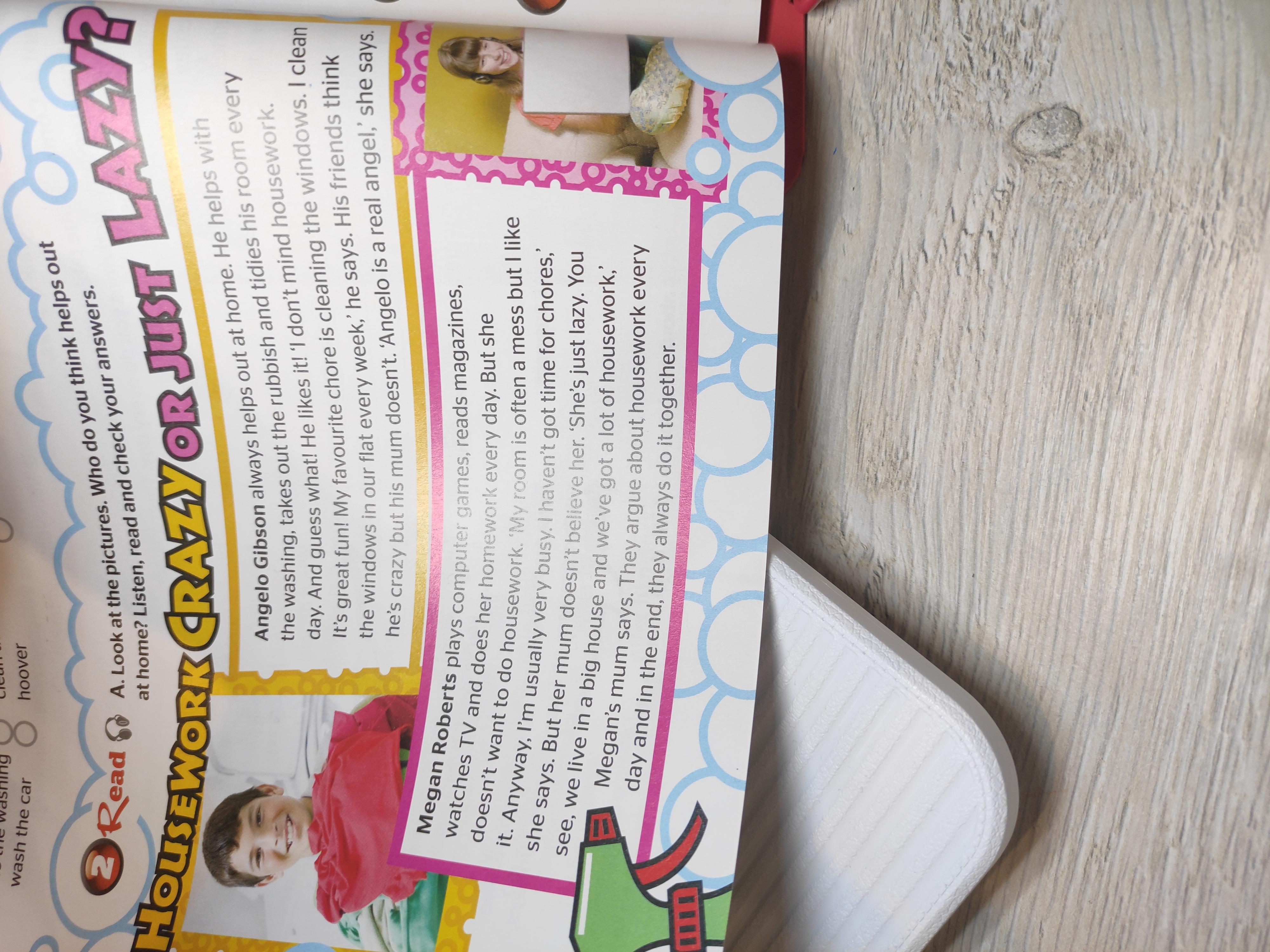 2. He helps with the washing, takes out the rubbish and tidies his room every day.