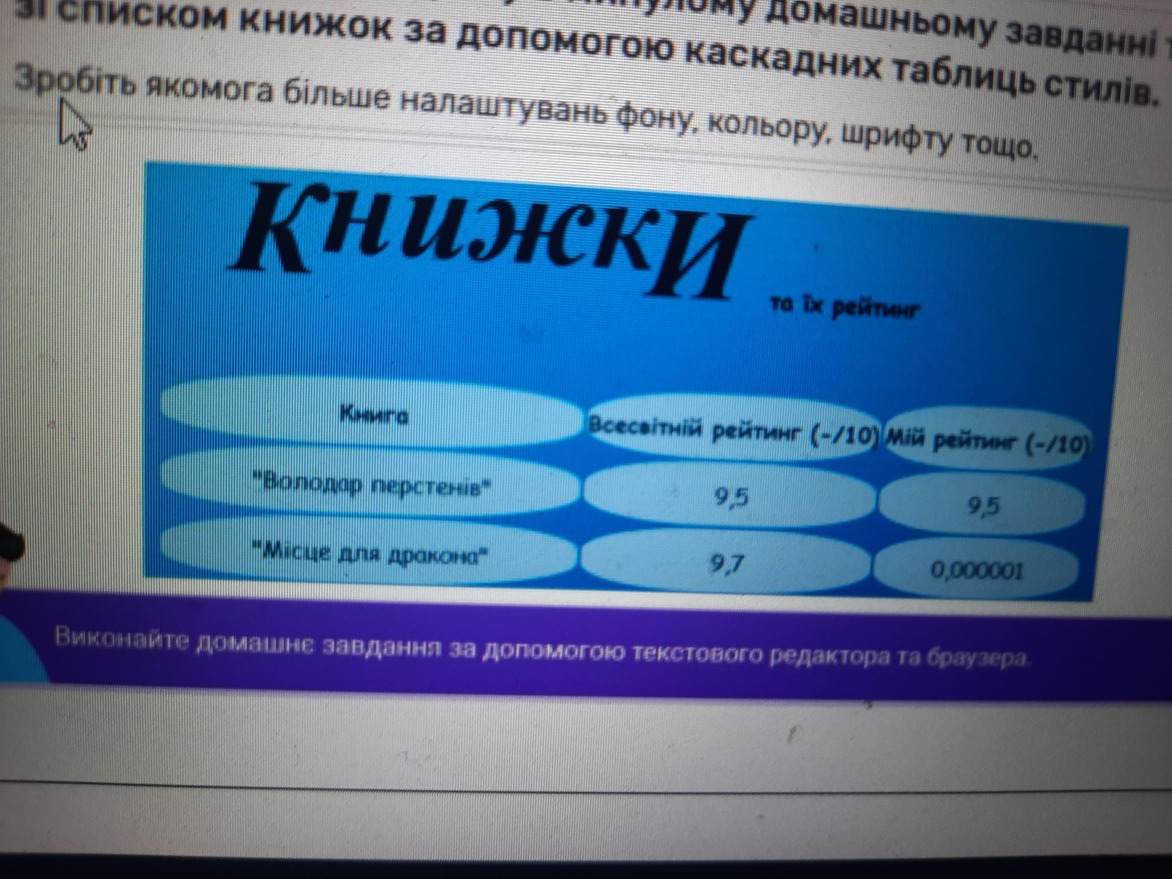Відформатуйте створену в минулому домашньому завданні таблицю зі списком книжок за допомогою какскадних таблиць стилів