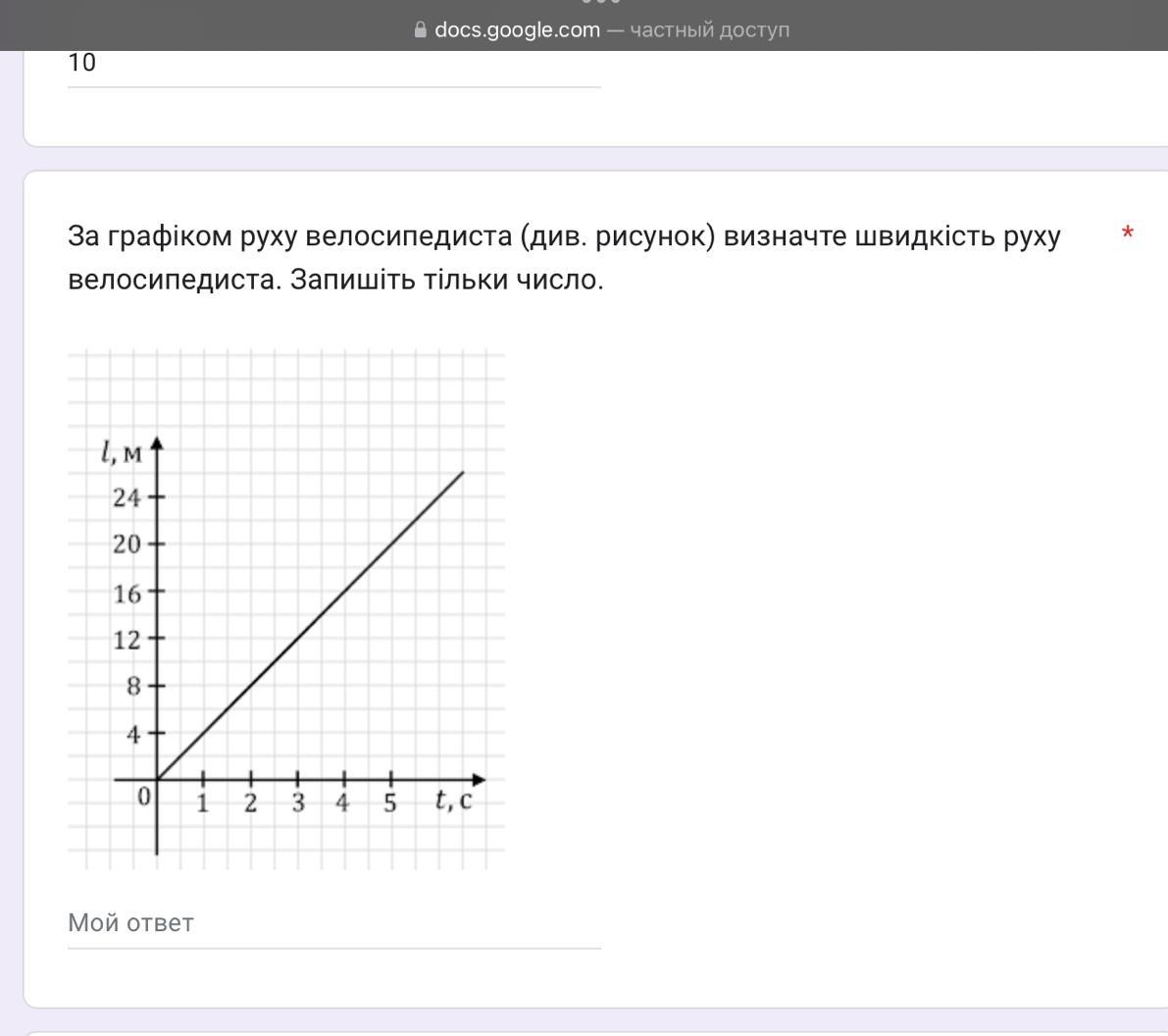 находишь любую координату времени и смотришь по графику расстояние; т.к. скорость = расстояние : время, то от выбора координат тут ничего не изменится. Например, t=1 c, l=4 м (по графику), отсюда v=l/t=4/1=4 м/с; можешь взять другие координаты, но результат будет таким же, ибо движение равномерное прямолинейное и за каждые равные промежутки времени тело проходит одинаковое расстояние