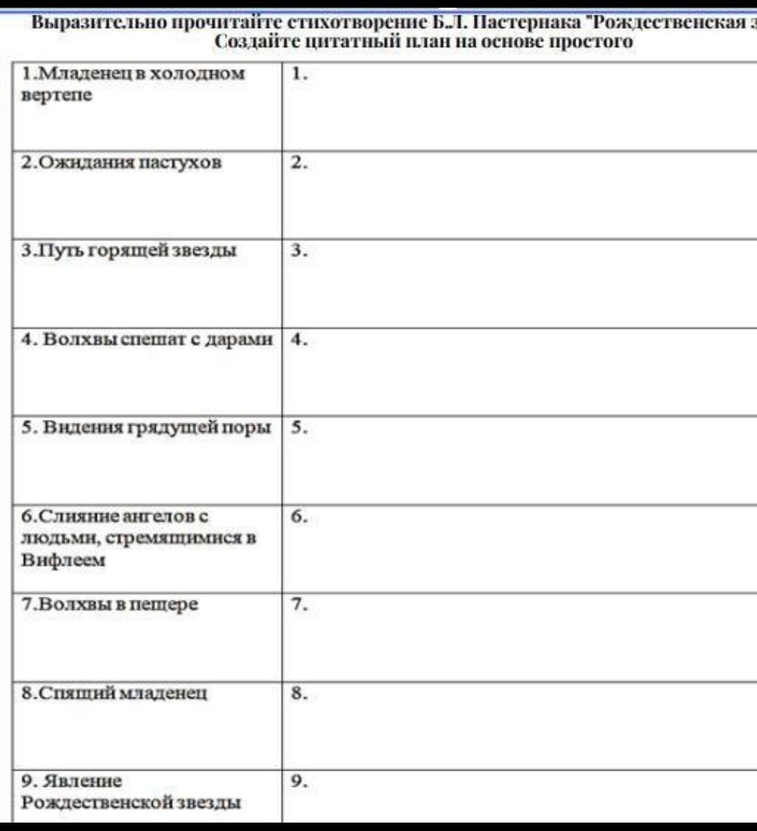 Прочитайте стихотворение Б.Л. Пастернака "Рождественская звезда". Создайте цитатный план на основе простого.