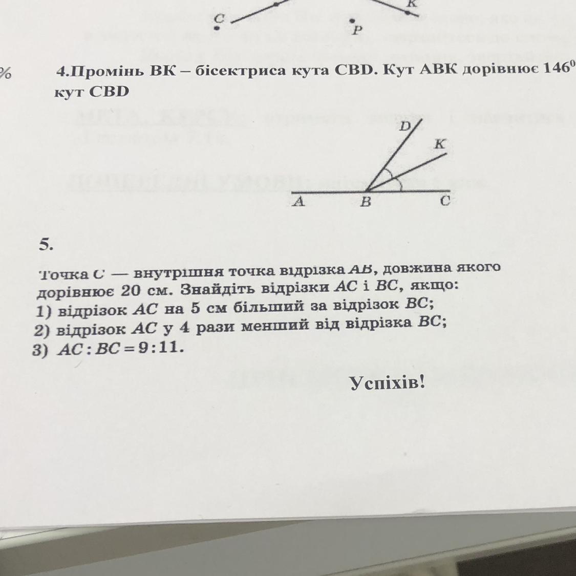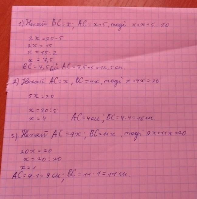 1) Дано, що відрізок АС на 5 см більший за відрізок ВС: