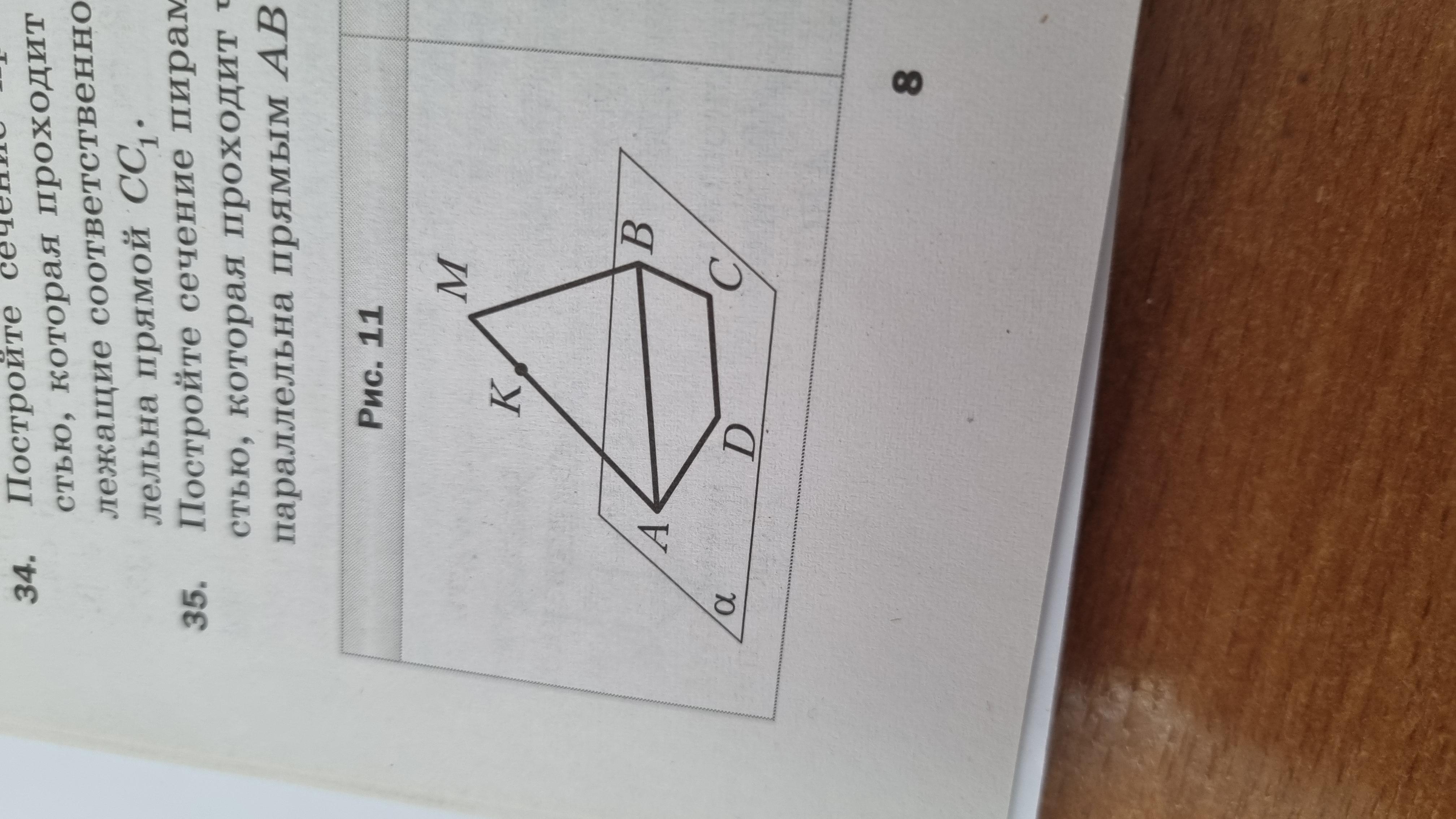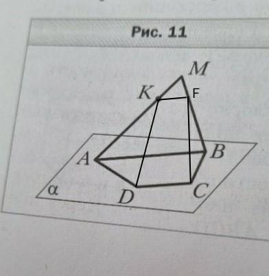 Трапеция ABCD (AВ || AB = 8cM Вне плоскости а выбрали точку М и на от- резке АМ отметили такую точку К, что AK / K * M = 3 * 1 (рис. 11). Постройте точку F пересечения плос- кости DKC и прямой МВ и найдите отрезок KF. С рисунком и дано пожалуйста. Дидактика геометрия 10 класс мерзляк