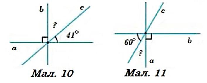 На малюнках 10 і 11 зображено перпендикулярні прямі а і b. Знайди невідомі кути.