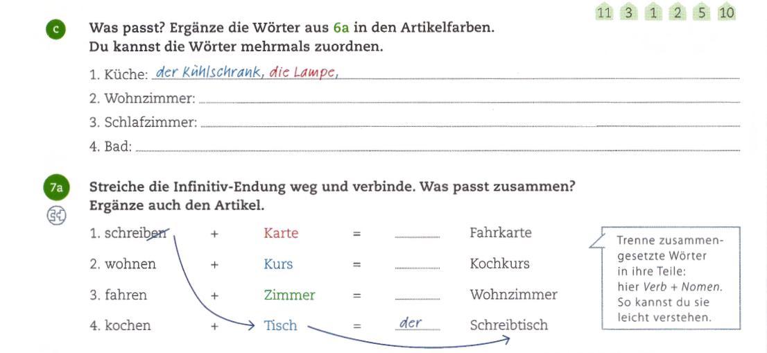 c. Küche der Herd, der Tisch, der Mikrowelle