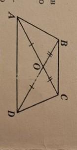 У чотирикутнику ABCD дагонали АС і В точкою перетину діляться навпіл, тоді він паралелограм (з ознак паралелограма). І за властивістю паралелограма AB = CD і BC = AD (як протилежні сторони паралелограма).