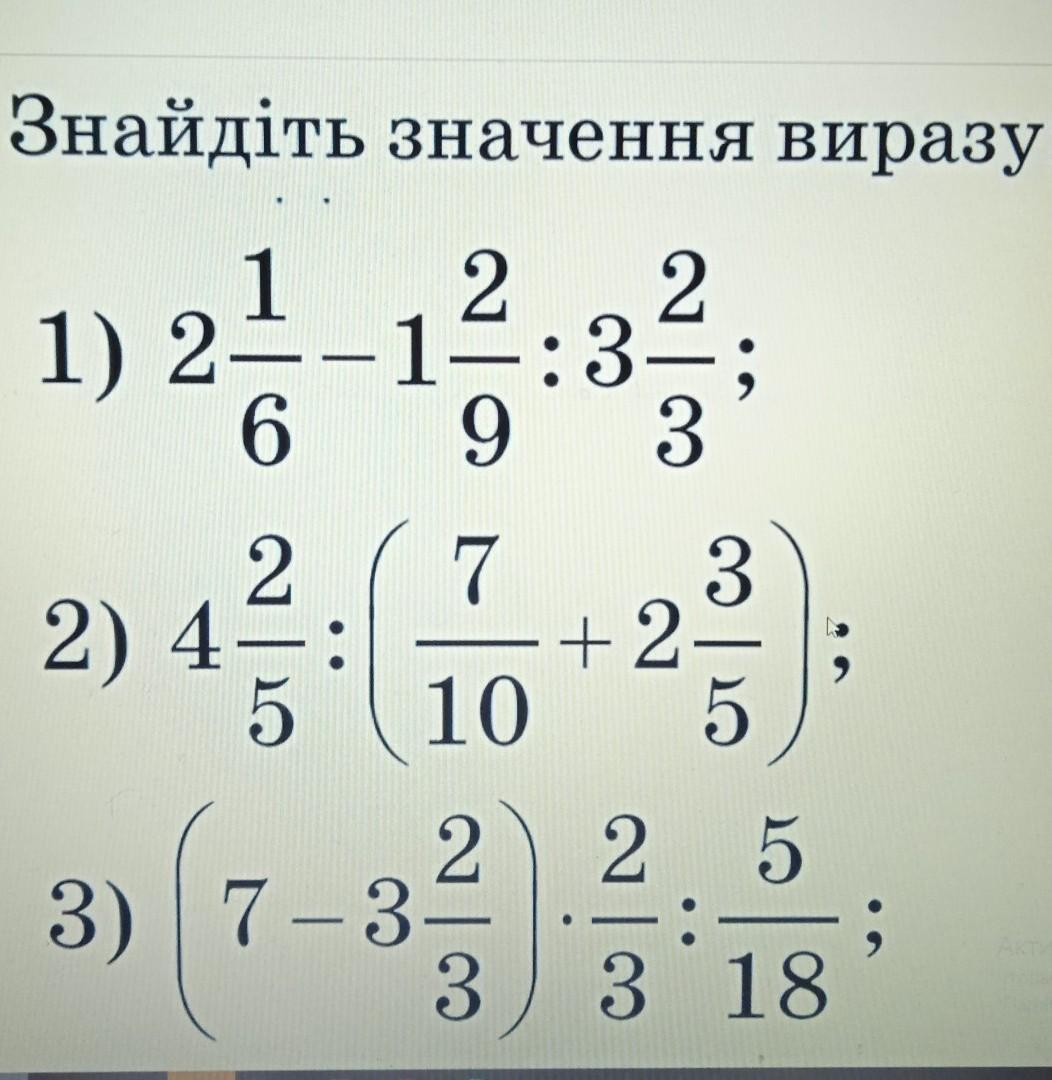 1) 2 1/6 - 1 2/9 : 3 2/3 = 13/6 - 11/9 : 11/3 = 13/6 - 11/9 * 3/11 = 13/6 - 1/3 = 11/6 =